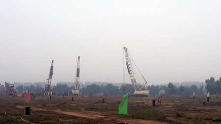 受業(yè)主委托,我單位分別承擔(dān)了2#區(qū)Ⅵ標(biāo)段、3#區(qū)Ⅰ-1標(biāo)段地基預(yù)處理工程及全場區(qū)試樁工程。地基預(yù)處理工程工作內(nèi)容為降水加強(qiáng)夯,降水井共完成634口,強(qiáng)夯施工完成約43.7萬㎡。試樁工程共完成8個(gè)試樁區(qū),試樁樁型包括預(yù)應(yīng)力高強(qiáng)混凝土管樁、機(jī)械連接先張法預(yù)應(yīng)力竹節(jié)樁、預(yù)制方樁、灌注樁等。
