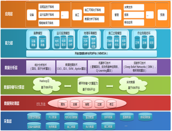 本項(xiàng)目在研究盾構(gòu)的運(yùn)行狀態(tài)進(jìn)行監(jiān)控和管理的基礎(chǔ)上,將盾構(gòu)運(yùn)行狀態(tài)參數(shù)及工況數(shù)據(jù),通過(guò)采集終端經(jīng)PLC、光纖、路由器、VPN隧道傳輸至遠(yuǎn)程數(shù)據(jù)中心,數(shù)據(jù)存儲(chǔ)使用工業(yè)級(jí)實(shí)時(shí)數(shù)據(jù)庫(kù),采集頻率可達(dá)毫秒級(jí)。業(yè)務(wù)基礎(chǔ)—對(duì)各類(lèi)盾構(gòu)機(jī)(機(jī)、電、液)深入分析,提供盾構(gòu)軌跡、管片軌跡、單環(huán)分析、掘進(jìn)效率等統(tǒng)計(jì)分析功能,以便管理決策層把握各項(xiàng)目施工情況。構(gòu)建盾構(gòu)/TBM施工與健康管理平臺(tái),實(shí)現(xiàn)以下四個(gè)功能:1、盾構(gòu)遠(yuǎn)程監(jiān)控,2、智能維保,3、盾構(gòu)施工輔助巡航,4、組態(tài)化模塊定制。進(jìn)行盾構(gòu)施工大數(shù)據(jù)相關(guān)性、關(guān)聯(lián)分析、影響因素分析,關(guān)鍵子系統(tǒng)健康管理和故障診斷,基于大數(shù)據(jù)的比較、聚類(lèi)、預(yù)測(cè)實(shí)現(xiàn)對(duì)盾構(gòu)施工進(jìn)行遠(yuǎn)程管理。