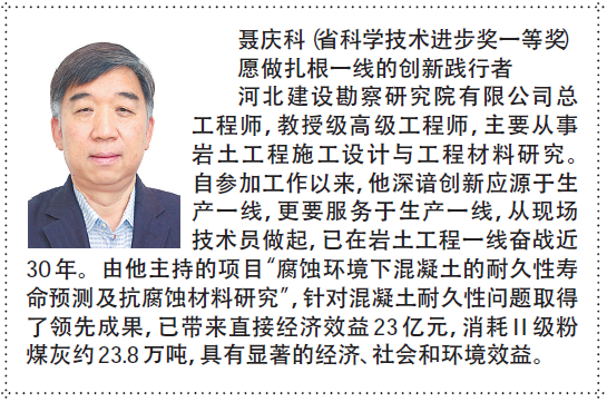 6月5日,河北日報專版文章《群英薈萃 碩果累累》對2017年度河北省科學技術獎獲獎人風采進行展示。我公司的完成的《腐蝕環(huán)境下混凝土的耐久性壽命預測及抗腐蝕材料研究》獲得一等獎,聶慶科總工程師作為第一完成人在專版文章中進行了刊載,這是以聶總為代表的廣大專業(yè)技術人員的共同光榮,也必將激勵我們更加努力爭創(chuàng)新的科技成果和榮譽。