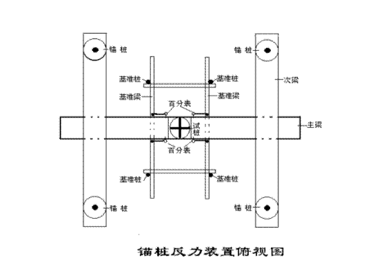 錨樁反力裝置就是將被測樁周圍對稱的幾根錨樁用錨筋與反力架連接起來,依靠樁頂?shù)那Ы镯攲⒎戳茼斊穑杀贿B接的錨樁提供反力,提供反力的大小由錨樁數(shù)量,反力架強度和被連接錨樁的抗拔力決定。錨樁反力裝置一般不會受現(xiàn)場條件和加載噸位數(shù)的限制,當條件允許,采用工程樁作錨樁是最經(jīng)濟的。