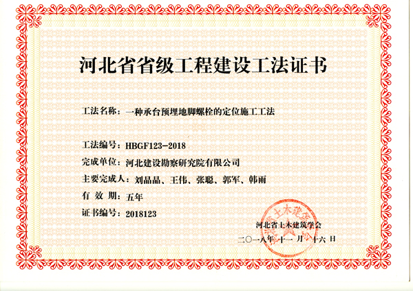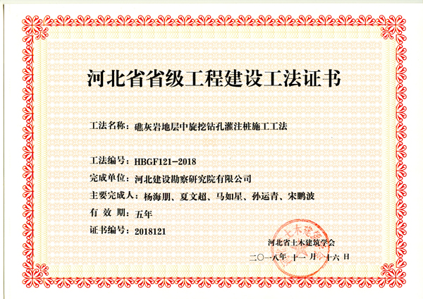 近日,河北省土木建筑學(xué)會組織專家對建筑施工企業(yè)申報(bào)工法進(jìn)行了評審,我公司申報(bào)的礁灰?guī)r地層中旋挖鉆孔灌注樁施工工法、鉆孔灌注樁泥漿凈化處理施工工法、一種承臺預(yù)埋地腳螺栓的定位施工工法,被評為2018年度省級工程建設(shè)工法。
