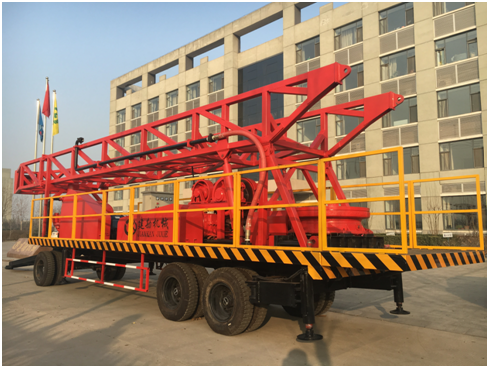 5、鉆機配套半掛式牽引車,堅固耐用,越野性強。鉆塔起落和鉆機調(diào)平均采用液壓系統(tǒng)控制,起落平穩(wěn),調(diào)平快捷。