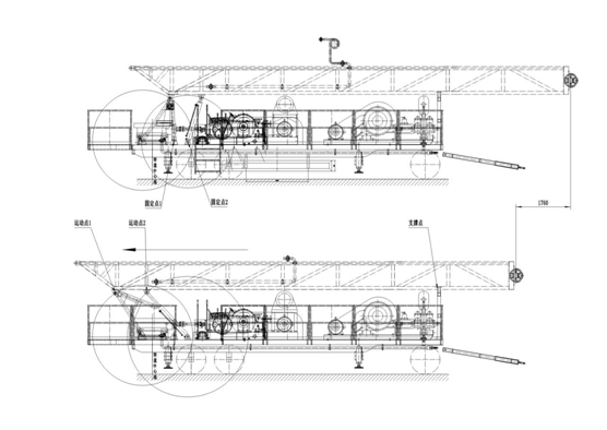 該型鉆機鉆塔通過液壓起塔油缸可整體橫向移動1760mm,使得鉆機在移動和運輸狀態(tài)時布局均勻,成功解決了拖車鉆機鉆塔“前短后長”的弊病。該型水井鉆機轉(zhuǎn)盤使用∅670mm通徑轉(zhuǎn)盤,轉(zhuǎn)盤輸入軸連接盤按JN162萬向軸連接尺寸加工,帶液壓活門機構(gòu),底盤兩側(cè)安裝柵格網(wǎng)底板。井口活門采用液壓驅(qū)動,在井口活門上安裝兩個開合油缸,推動井口活門開合,有效降低了操作者的勞動強度,使用方便可靠。