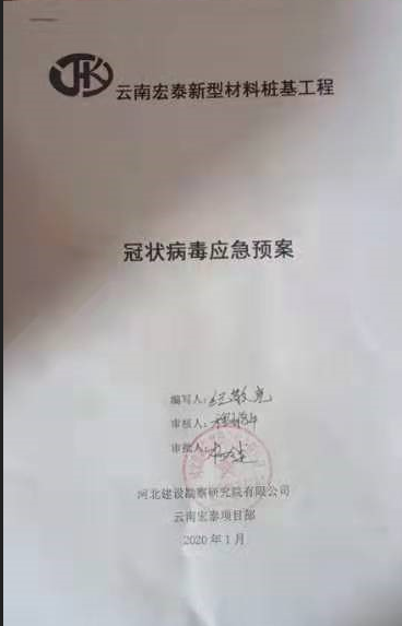 在新聞報道疫情初期,正月初二,云南宏泰樁基工程項目部便成立應(yīng)急小組,為抗擊疫情做了很多預(yù)防措施,編制應(yīng)急預(yù)案。
