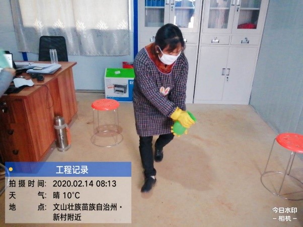 每天使用84消毒液對于大家的生活環(huán)境(宿舍、食堂、辦公室、水房、廁所等)進行消毒,尤其是水房及廁所等細菌病毒易于滋生的地方。由司機兼采購宋玉杰,負責(zé)消84毒液的采購,保證供應(yīng)。