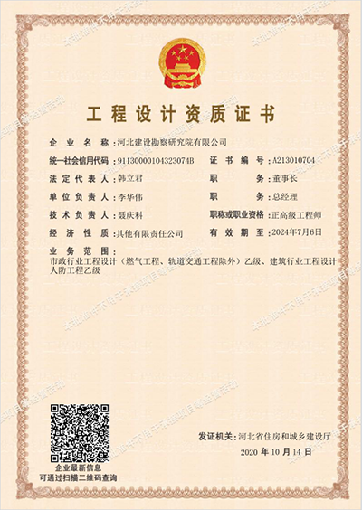 公司于2020年10月27日取得了建筑行業(yè)(人防工程)工程設計乙級資質證書,可承擔(1)建設規(guī)模在1000萬元以下的各級人防工程設計項目;(2)建設規(guī)模在2000萬元以下的醫(yī)療救護工程、防空專業(yè)隊工程、人員掩蔽工程、人防配套工程設計項目。