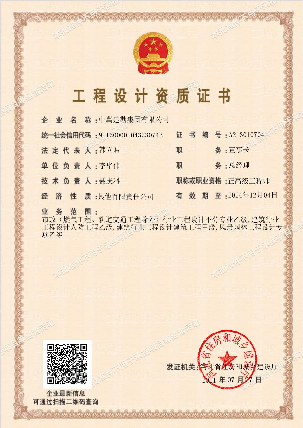 集團(tuán)公司取得風(fēng)景園林工程設(shè)計(jì)專項(xiàng)乙級(jí)資質(zhì)證書