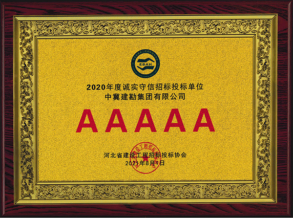 近日,公司被河北省建設工程招標投標協(xié)會評為2020年度河北省建設工程招標投標誠實守信5A級施工企業(yè)。