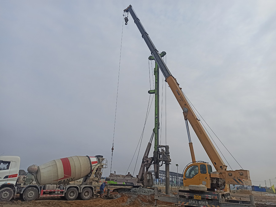 本項目一體化罐區(qū)化工原料產(chǎn)品罐區(qū)樁基工程,設(shè)計為CFG樁,樁徑為500mm,樁長為12m,共1054根,工程量2483.43m³;液氨罐組樁基工程,采用樁徑800mm旋挖成孔灌注樁,基樁分類為端承樁。樁長為36-39m,共88根,工程量1616m³;