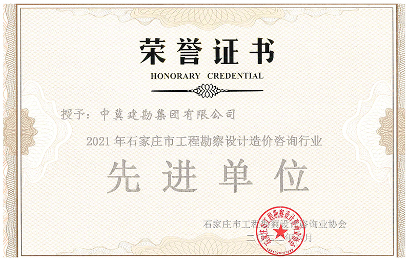 近日,石家莊市工程勘察設(shè)計(jì)咨詢業(yè)協(xié)會(huì)下發(fā)文件《關(guān)于表彰2021年石家莊市工程勘察設(shè)計(jì)造價(jià)咨詢行業(yè)先進(jìn)單位和先進(jìn)個(gè)人的通知》(石設(shè)協(xié)字【2022】6號(hào)),我公司被授予“2021年石家莊市工程勘察設(shè)計(jì)造價(jià)咨詢行業(yè)先進(jìn)單位”稱號(hào),韓立君同志、商衛(wèi)東同志被授予“2021年石家莊市工程勘察設(shè)計(jì)造價(jià)咨詢行業(yè)先進(jìn)個(gè)人”稱號(hào)。此榮譽(yù)的獲得說明了公司在貫徹高質(zhì)量發(fā)展戰(zhàn)略方面取得了良好業(yè)績(jī),為推動(dòng)我市勘察設(shè)計(jì)行業(yè)高質(zhì)量發(fā)展做出了積極貢獻(xiàn),得到了行業(yè)的肯定和認(rèn)可。