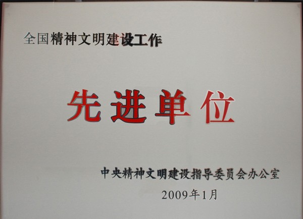 近年來(lái),我公司堅(jiān)持以科學(xué)發(fā)展觀為指導(dǎo),在全體員工中積極開(kāi)展精神文明創(chuàng)建活動(dòng),文明施工程度和員工素質(zhì)不斷提高,精神文明建設(shè)取得顯著成績(jī)。近日,我公司受到中央精神文明建設(shè)指導(dǎo)委員會(huì)辦公室表彰,被授予“全國(guó)精神文明建設(shè)工作先進(jìn)單位”稱號(hào)。