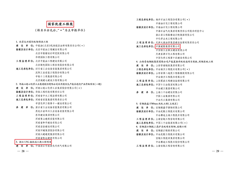 1、國家優(yōu)質(zhì)工程獎(金獎)