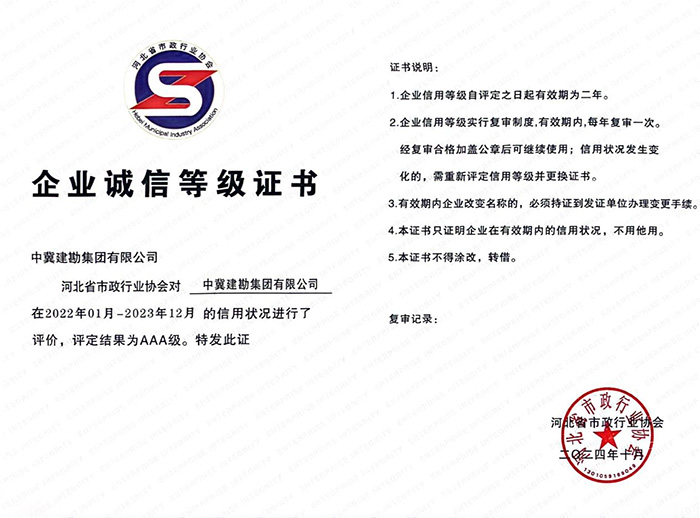 集團公司榮獲“河北省市政行業(yè)AAA級誠信企業(yè)”榮譽稱號