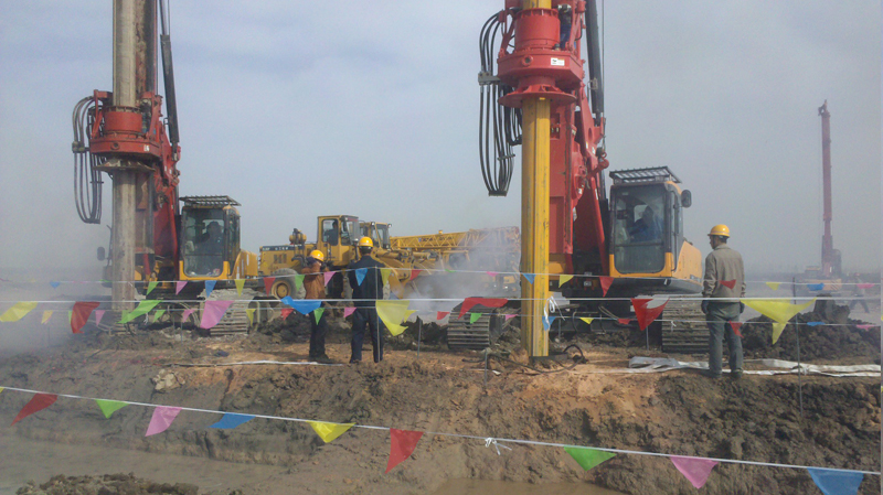 施工內(nèi)容包括:灌注樁鋼筋籠制作、運(yùn)輸及安放,鉆孔樁成孔、商品砼采買、砼灌注等工作。我公司采用旋挖鉆機(jī)成孔,樁數(shù)總計(jì)906根,樁徑600mm,樁身混凝土強(qiáng)度等級(jí)C35,灌注混凝土9103m3。