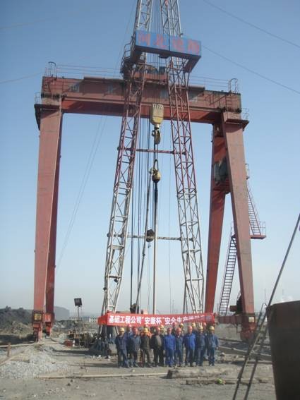 本工程成孔垂直度要求高,要求控制在1.0‰以內(nèi),投料管重量大,總重達到356t,施工難度大;經(jīng)過精心組織,質(zhì)量合格,一次交付。