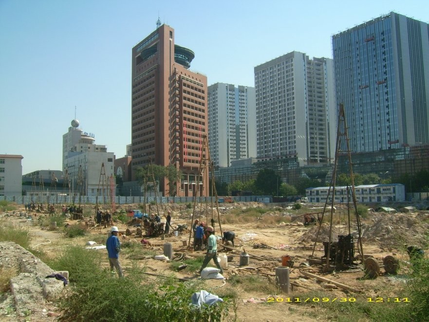 擬建場(chǎng)地基巖面起伏較大,巖溶地質(zhì)條件復(fù)雜,基巖內(nèi)溶洞、裂隙發(fā)育。溶洞最大高度為9.7m,對(duì)勘察揭露的空洞、半充填溶洞及破碎帶采用先充填粗骨料后注漿治理方法;對(duì)嵌巖樁采用“一樁一探、探治結(jié)合”;根據(jù)巖溶治理方案專(zhuān)家論證評(píng)審意見(jiàn),對(duì)對(duì)原古采煤巷道采用鉆探與物探相結(jié)合的方法。利用鉆探孔直接在巷道平面位置及周邊進(jìn)行巷道探查,利用井下電視、井間CT、淺層地震和瞬變電磁物探手段進(jìn)行驗(yàn)證,同時(shí)對(duì)遠(yuǎn)年采空區(qū)進(jìn)行了探查驗(yàn)證并進(jìn)行了治理。2012年4月22日,專(zhuān)家評(píng)審驗(yàn)收意見(jiàn)為:提供的巖溶地基治理竣工資料齊全、內(nèi)容較全面,滿(mǎn)足巖溶地基治理工程竣工驗(yàn)收評(píng)審要求;檢測(cè)單位采用了鉆探及面波等檢測(cè)方法可靠;巖溶地基治理效果達(dá)到了設(shè)計(jì)要求,同意通過(guò)竣工驗(yàn)收評(píng)審。